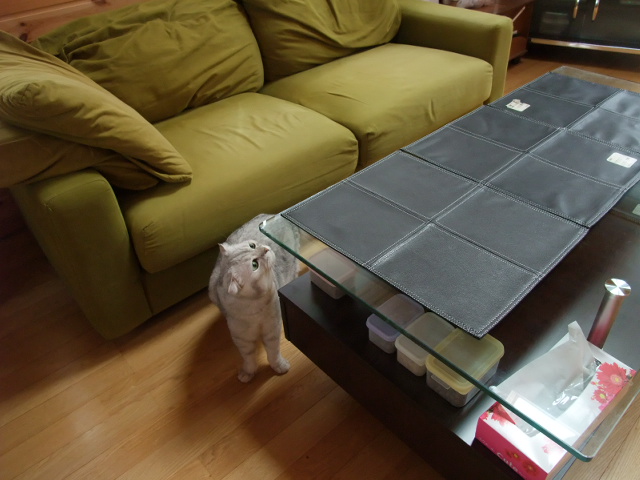 ソファーの前に、旦那の実家からダイニングセットがやってきました。