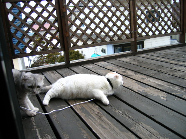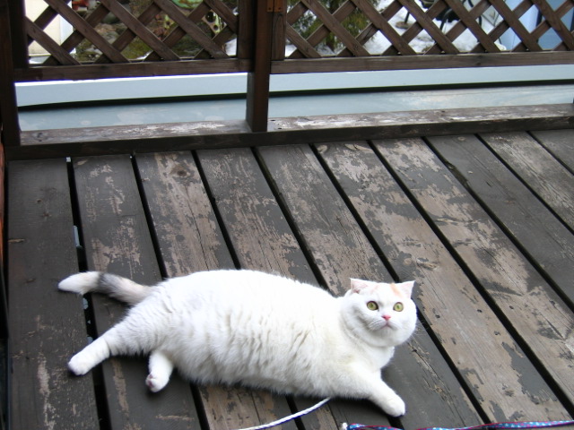 モモはベランダに出るとすぐゴロン