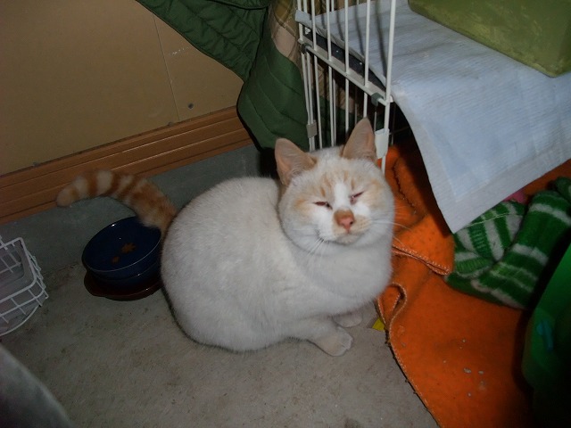 苦肉の策で、かわいそうですが物置にゲージを入れ
