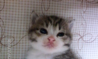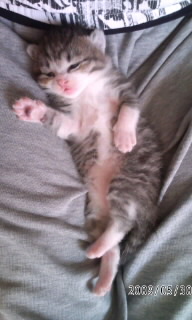 この子は、まだ目が半開き?尻尾が縞々でキュートです。