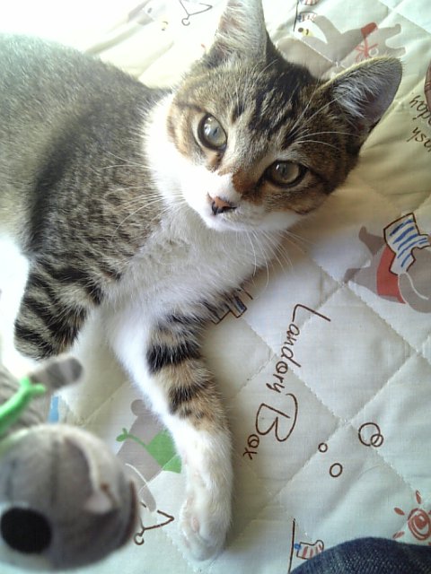 そして、夜寝るときは、ともねこに、ベッタリ。